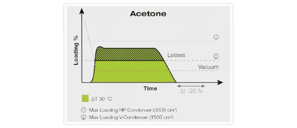 Some more good news: only a negligible amount of solvent entered the vacuum pump , which helps to reduce the wear of the vacuum pump parts and protects the environment. And if you really value your material, take a look at the graph below: