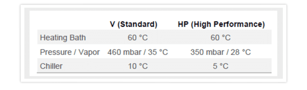 But you know me, I got to see it to believe it. So I set out to test how condenser surface area really affects distillation efficiency with an experiment. There I compared a standard condenser with a surface area of 1500 cm2 and a high performance (HP) version with 3000 cm2. For all experiments, I evaporated 1200 mL of acetone in a 2L flask at a speed of 280 rpm on a Rotavapor® R-300 .