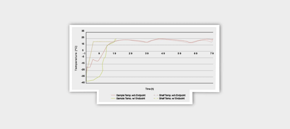 endpoint determination via temperature can optimize the freeze-drying process so that it runs for the smallest possible amount of time, helping increase productivity and save time and resources.