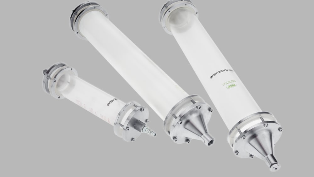 GlasPure are empty glass columns that can be filled by the user and therefore allow maximum flexibility in terms of scale and separation requirements. They are designed for sample amounts over 300 g and pressure up to 50 bar (725 psi).